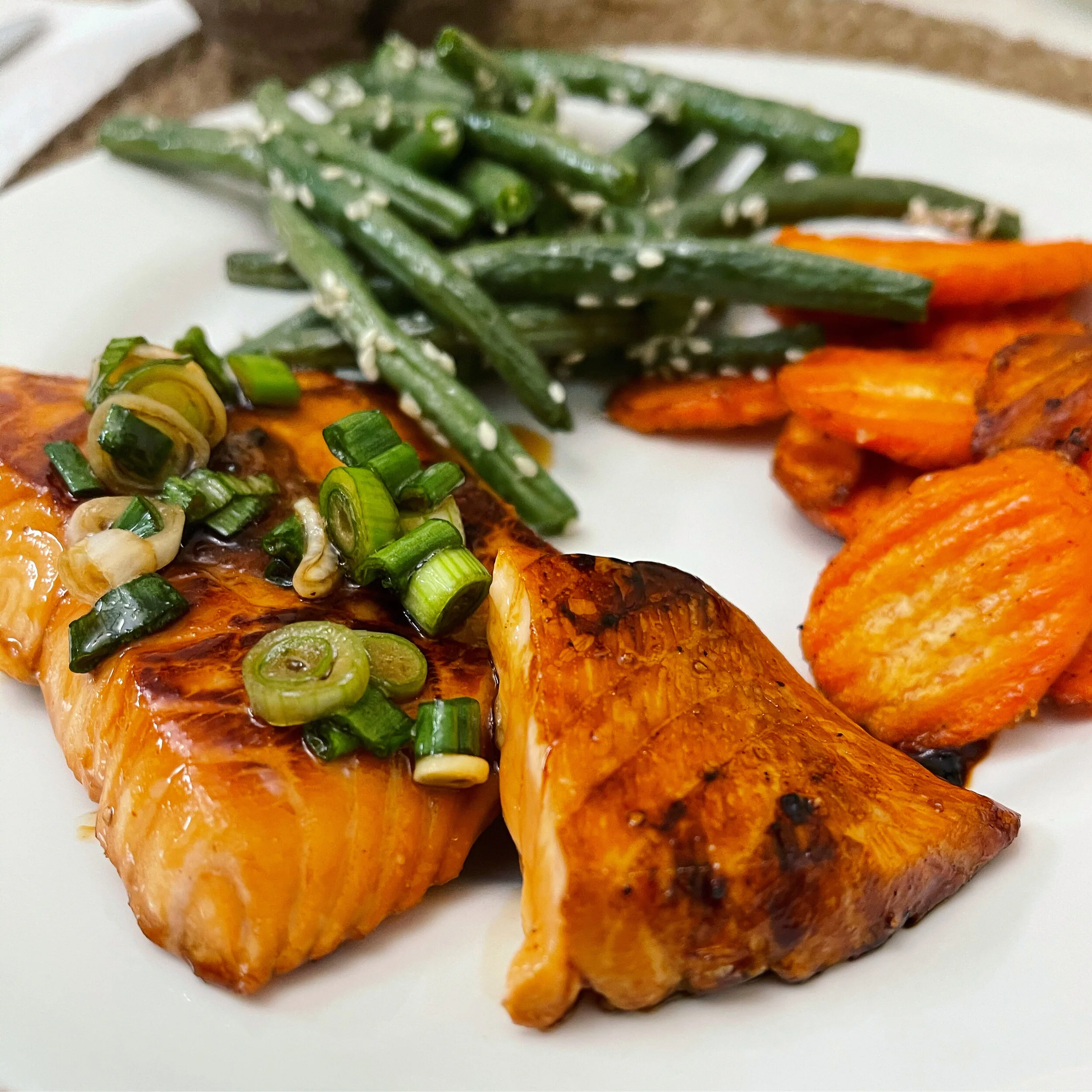 ~1 lb of salmon (I buy mine fresh at Kroger, and usually go for a filet that is an even thickness throughout)