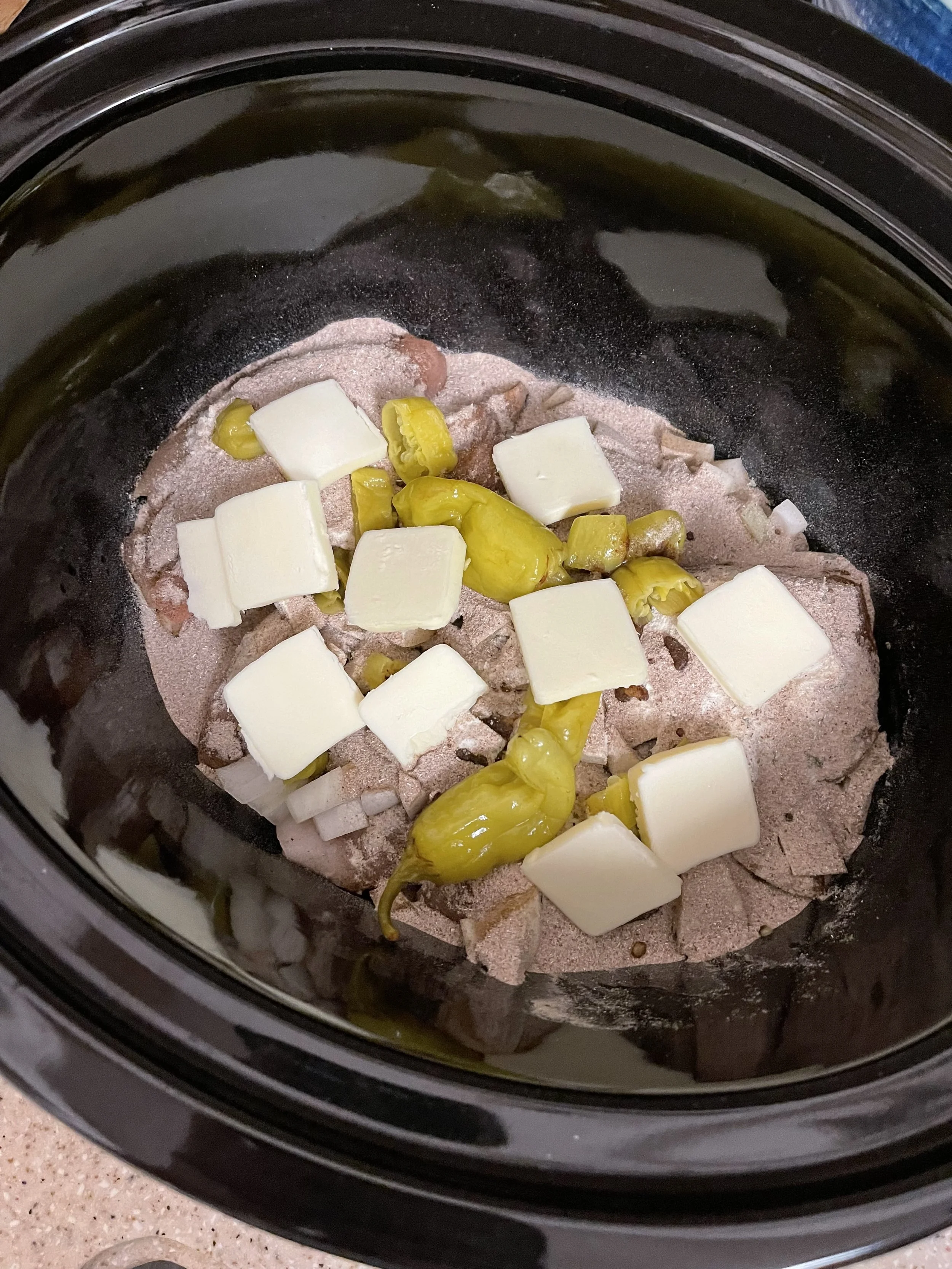 A few years ago, my friend Brittany introduced me to the slow cooker Mississippi roast. I thought my life was forever changed. I was so excited to make this for the first time, and I thought all day about coming home to dinner already being ready. I know y’all are waiting for the “womp womppp”— William hated it. Apparently he hates roast…who knew? Major disapointment on my part. Flash forward to present day, and a few weeks ago one of my favorite foodie friends, Katie Denny (@thedailydennyr) posted that she made Mississippi chicken. I felt like I had the biggest a-ha moment— OMG, I will make the exact same recipe, but sub chicken for the roast. Shoutout Katie and shoutout Brittany for introducing me to my new favorite dinner, and the easiest recipe around.